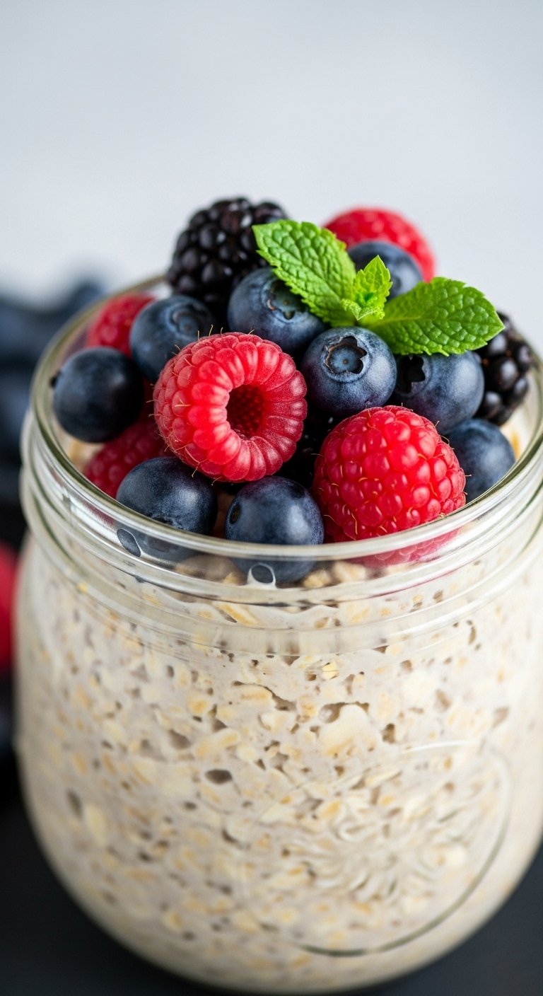 This is the perfect base when you want to scale up. Make a big bowl of neutral oats and customize jars throughout the week. It solves the “what to eat” problem in seconds.
