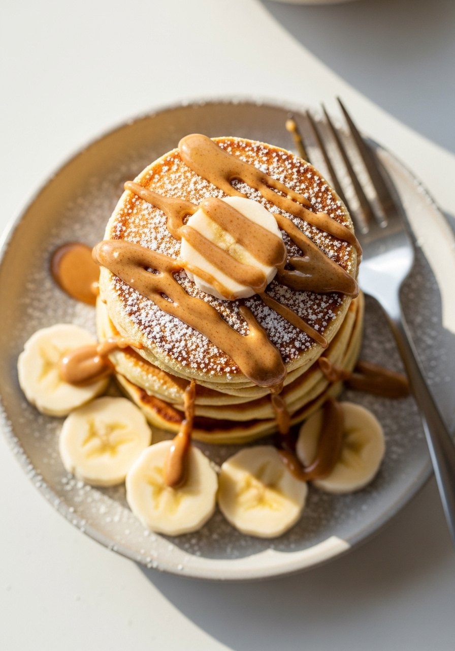 - Stack and serve with sliced banana and a drizzle of almond butter.