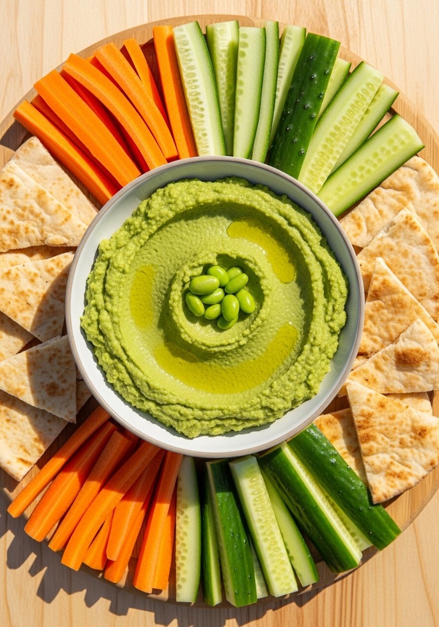 11. Edamame Hummus with Veggie Dippers (Vegan Protein Snack)
