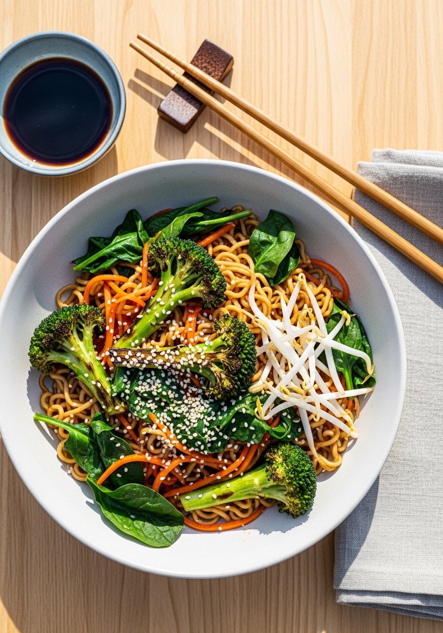 This vegetable stir-fry ramen recipe puts fresh veggies and quick stir techniques front and center. The sauce is savory and slightly sweet, and toppings like toasted sesame and crunchy sprouts give contrast. It’s a go-to for weeknights or when you want a lighter bowl packed with texture.