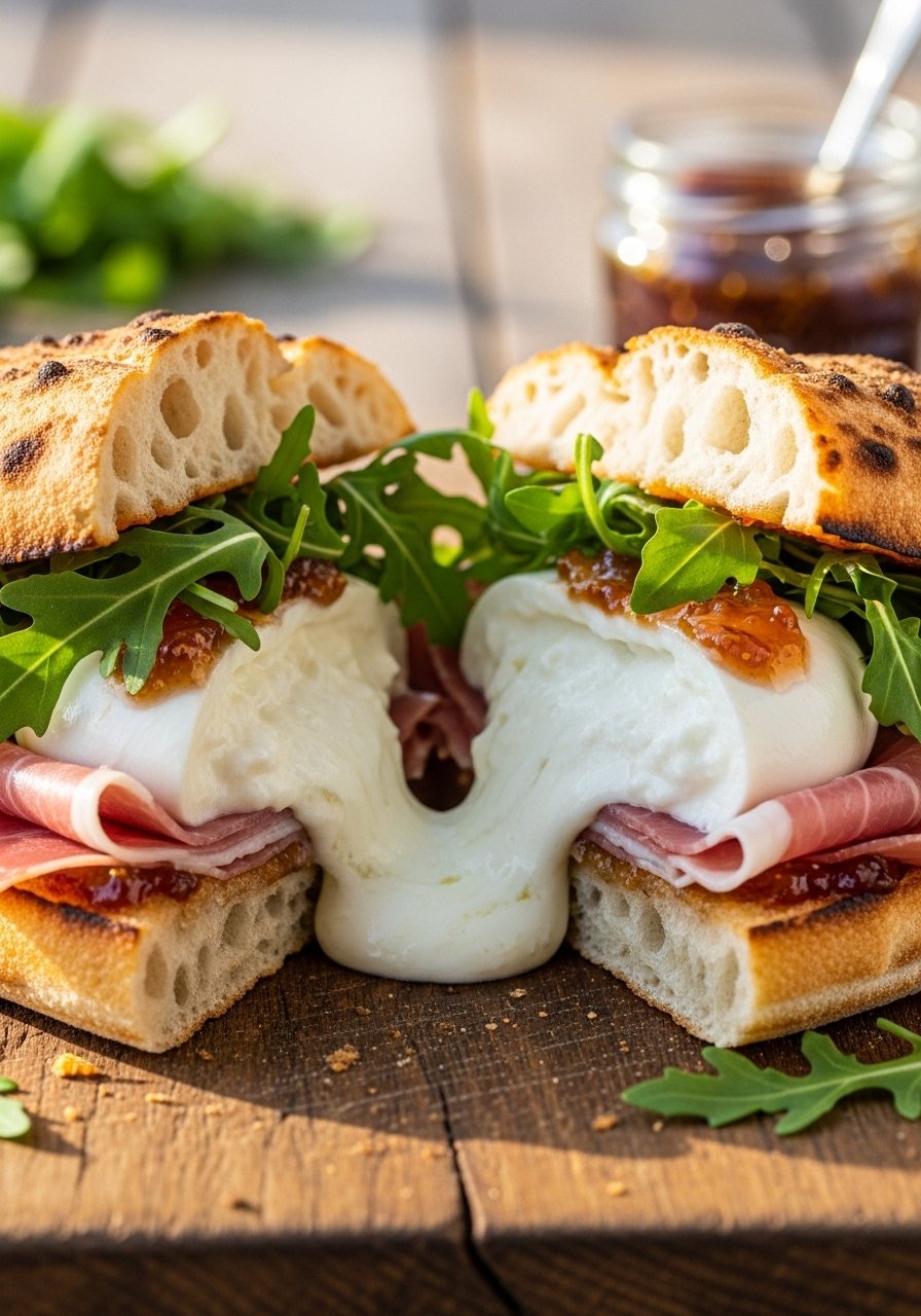 This sandwich borrows the best parts of pizza—blistered crust, stretchy cheese, bright greens—and seals them between crisp bread for a handheld treat. The burrata gives a creamy center while prosciutto and fig jam add salty-sweet contrast. It’s perfect for weekend lunches or when you want something a little showy.