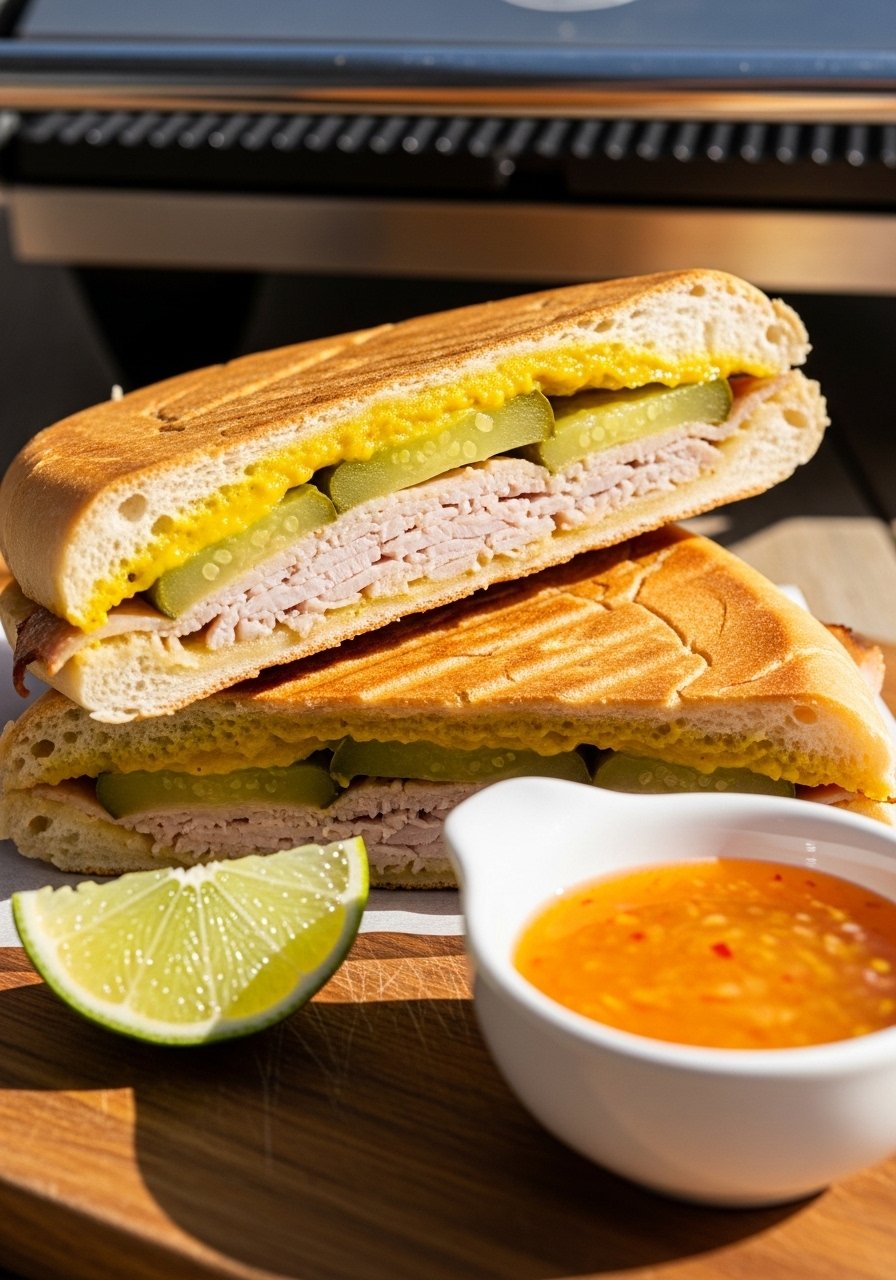 This Cuban sandwich recipe skips long-roasted pork and uses quick-marinated pork chops for tender slices in under an hour. You still get the classic ham, Swiss, pickles, and mustard with a citrusy mojo brightness. It's great for weeknight dinners or a special lunch.