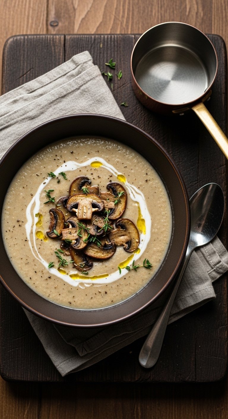 This creamy mushroom soup is rich and deeply savory, perfect when you want a restaurant-style bowl at home. Sautéed cremini mushrooms with thyme give concentrated umami, while a quick blender step makes the texture dreamy without heavy cream. If you love earthiness and a silky mouthfeel, this is for you.