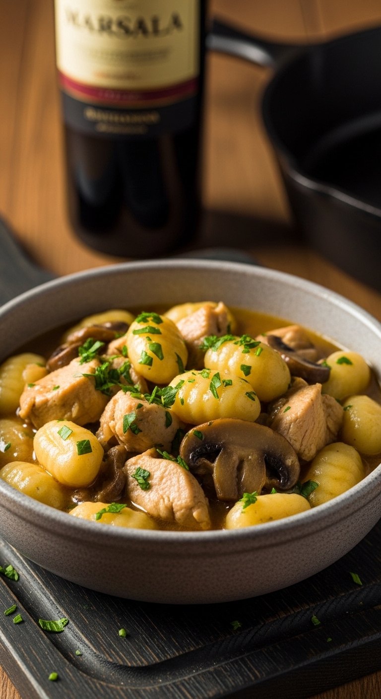 This soup borrows the sweet-savory notes of chicken Marsala and turns them into a cozy, gnocchi-studded bowl. Sautéed cremini mushrooms and a splash of Marsala wine add depth; pillowy gnocchi makes it filling enough for dinner. It tastes like a restaurant cozy night in.