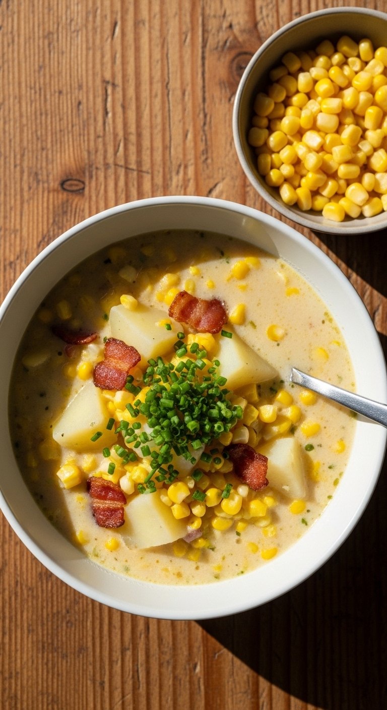 This corn chowder is sweet, creamy, and satisfying in under 30 minutes. Sweet corn and tender potatoes form a heartwarming base while a touch of bacon and cream rounds it out. It’s a great use of fresh or frozen corn.