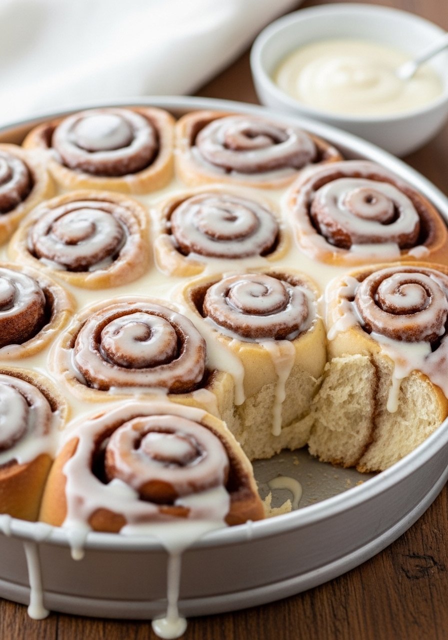 6. Shape & proof: Roll tightly, cut into 12 rolls. Place in a greased 9×13-inch pan, cover, and proof 1.5–2 hours until puffy.