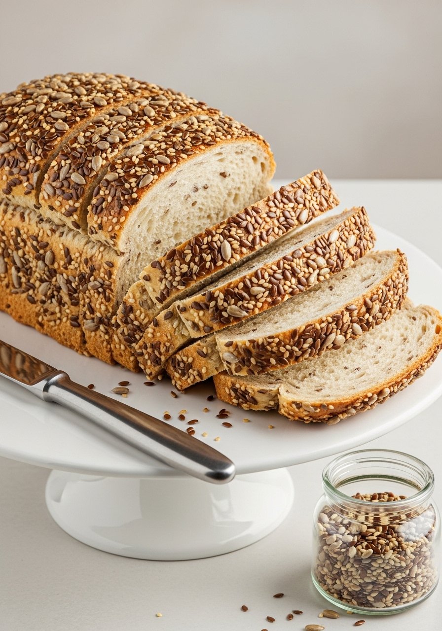 This sandwich loaf has a tender crumb with a thin, seeded crust—perfect for sandwiches or toast. A Pullman or loaf pan yields even slices suitable for sandwiches. Adding seeds boosts texture, nutrition, and appearance.