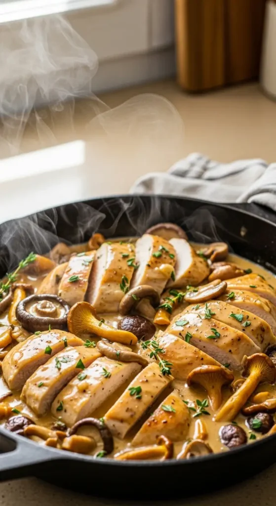 This dish brings comfort in every bite with a creamy sauce that clings to tender chicken. Mushrooms add earthiness, while simple seasoning keeps it familiar. It cooks in one pan, making cleanup easy. Great for busy evenings or holiday lunches.