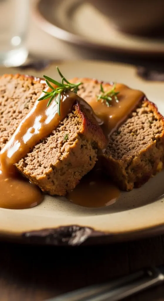 Slice while warm. Serve with peas. Spoon gravy over. Best fresh from oven. Crowd-friendly.