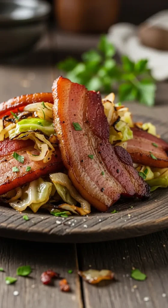 Slice bacon thickly. Serve with potatoes. Spoon cooking liquid lightly. Best served warm. Classic comfort.