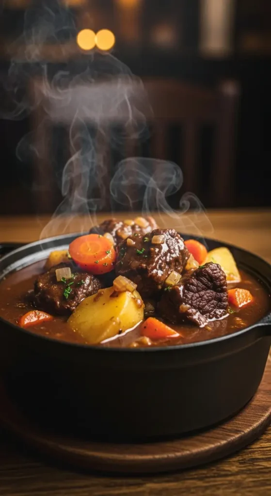 This classic stew stands out for its rich depth and slow-simmered comfort, with stout beer adding a subtle bitterness that balances the tender beef and vegetables beautifully