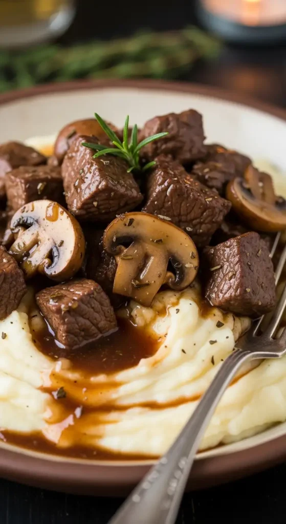 Serve over mash. Spoon gravy generously. Add pepper. Best served hot. Cozy and rich.