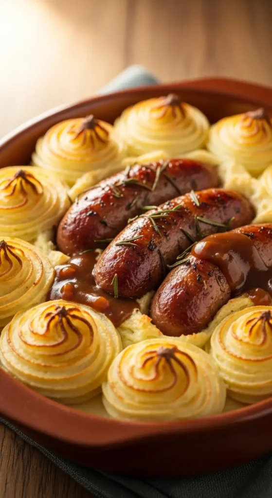 This pub-style classic brings together savory sausages and smooth mash for an easy crowd favorite.