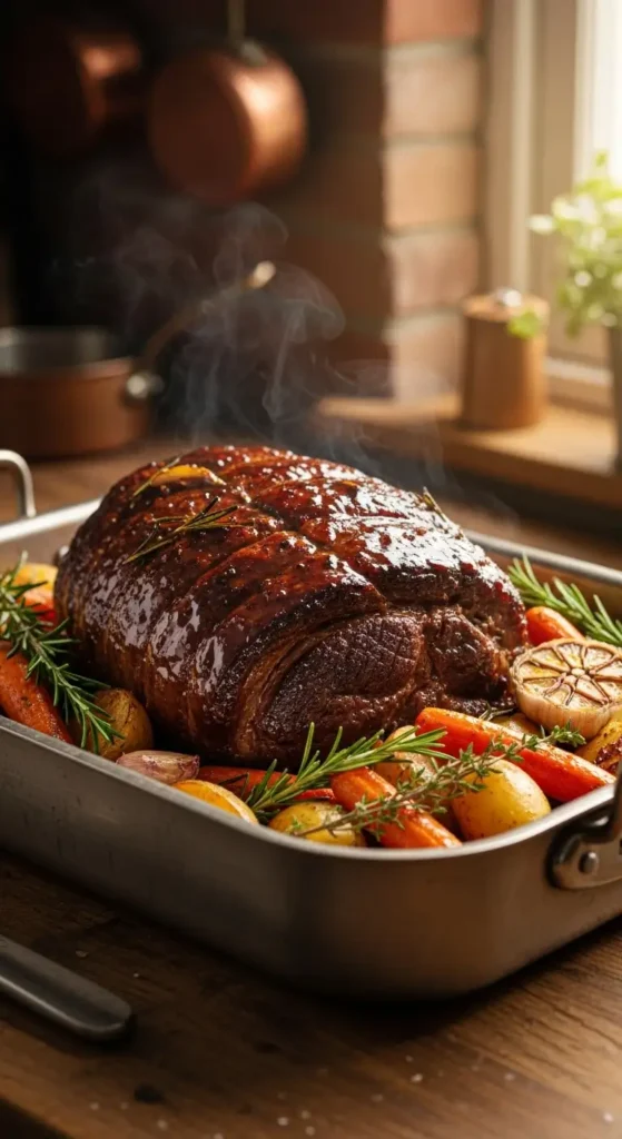 A slow oven roast delivers tender slices and rich pan juices that feel perfect for a relaxed holiday meal.