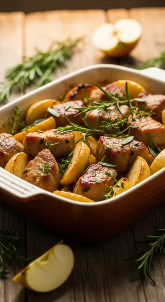 Pork and apple bring balance with savory and sweet notes in this oven-baked dish.