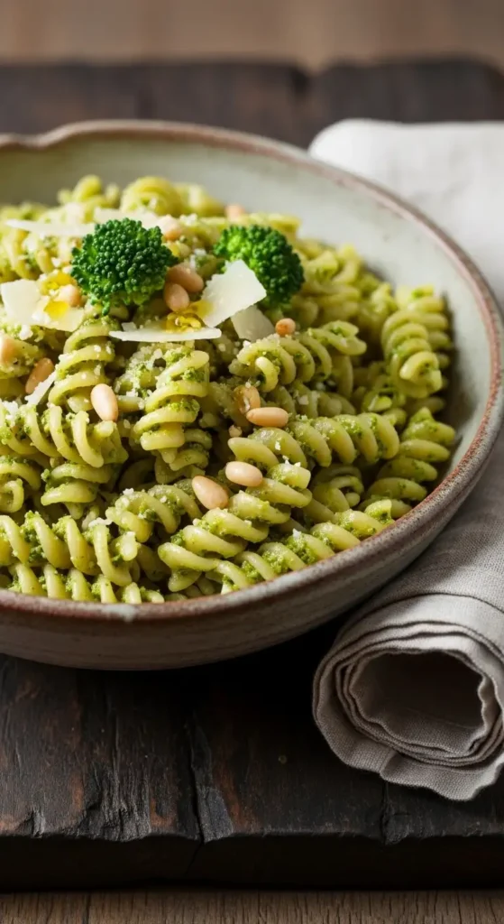 Broccoli pesto brings a mild, earthy flavor that works well with fusilli. The pasta catches the sauce nicely. It’s a smart way to add greens. Great for weeknight cooking. Festive and filling. Easy to love.
