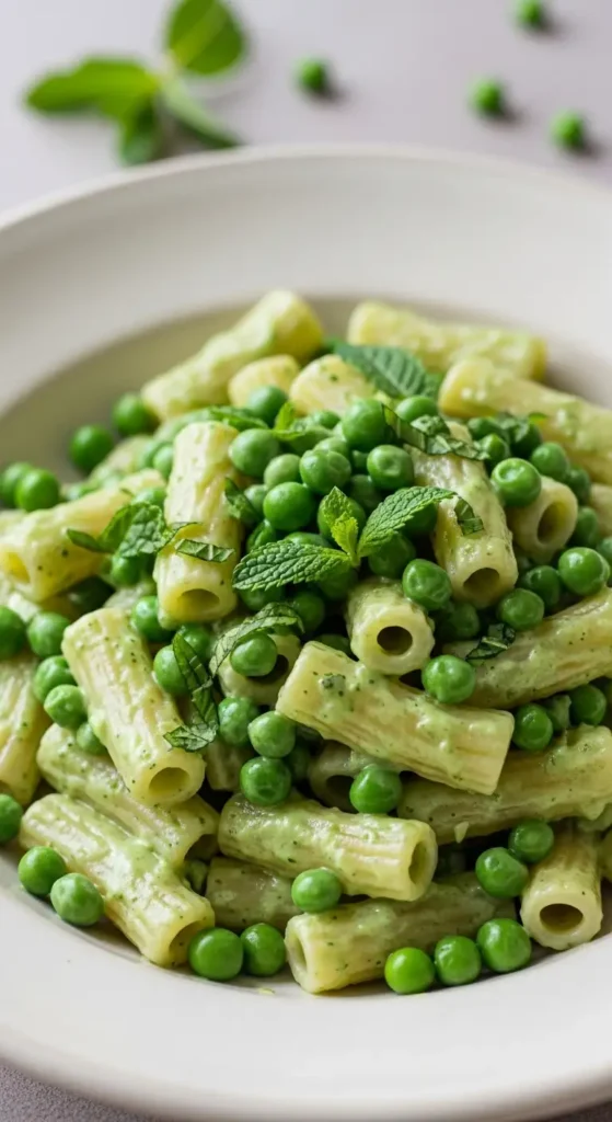 This carbonara-style dish uses peas for color and sweetness. It feels rich but balanced. The sauce coats the pasta smoothly. A fresh take on a favorite. Works well for celebrations. Comforting and familiar.