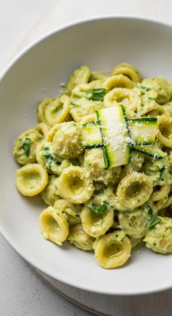 This sauce feels smooth and gentle. Zucchini adds subtle color and softness. The pasta stays light yet satisfying. Ideal for spring. Easy to prepare. Pleasant and mild.
