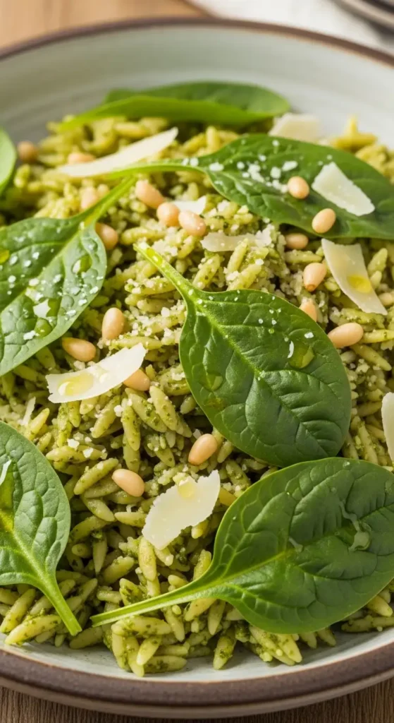 Orzo gives a different texture that feels cozy and filling. Spinach blends smoothly with pesto. It’s easy to serve family-style. Great for gatherings. Balanced and comforting. Simple to make.
