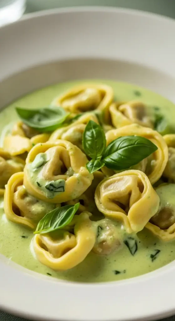 This tortellini feels rich and comforting. Basil cream adds gentle herbal flavor. It looks festive without extra effort. Great for quick dinners. Filling and cozy. Always popular.
