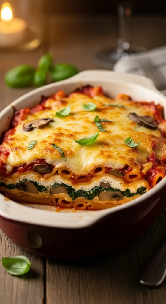 This baked dish feels hearty and familiar. Spinach and mushrooms bring depth and color. It’s great for feeding a group. Holds well after baking. Perfect for holiday tables. Comforting and filling.