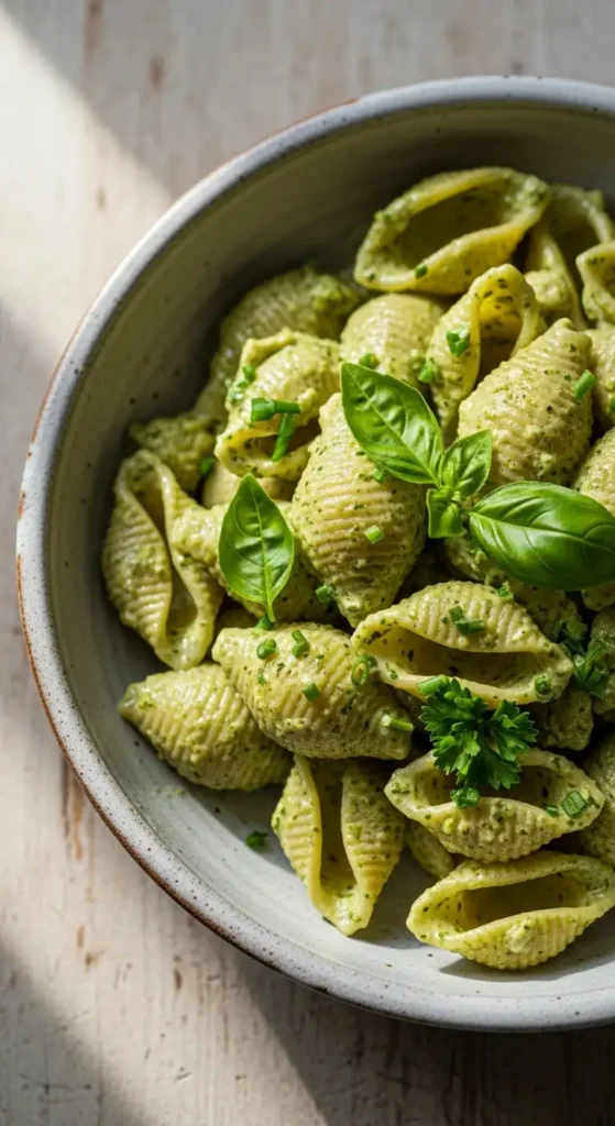 Shells hold the sauce beautifully, making each bite comforting. The herb cream feels smooth and balanced. It’s easy to prepare and serve. Works well for family dinners. The green tone feels festive. A reliable final dish.
