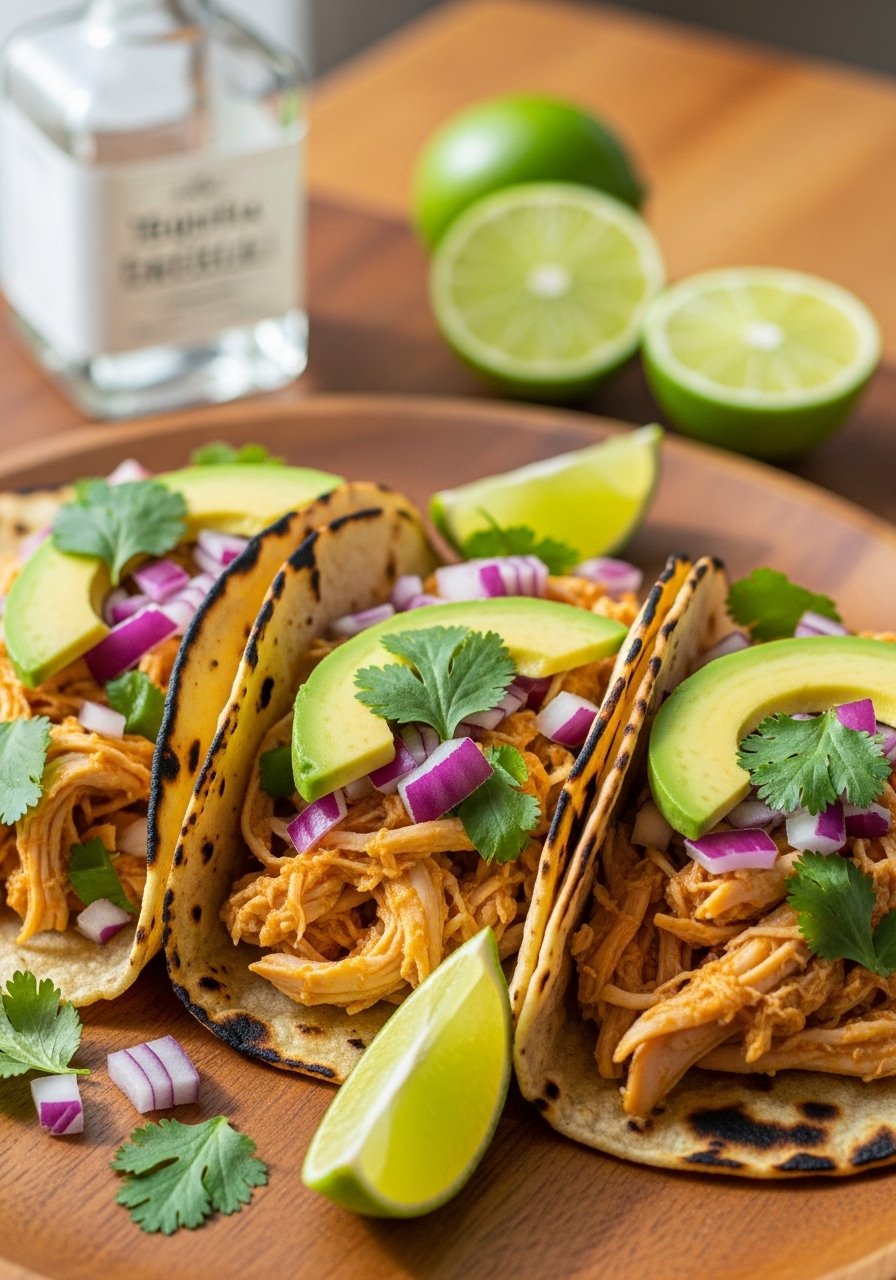 This tequila-lime chicken taco recipe is bright, juicy, and weeknight-friendly. The marinade adds citrusy heat that caramelizes under high heat for a slightly charred edge. It’s great for build-your-own taco nights and picky eaters will love the familiar flavors. Expect tender shredded meat with a crunchy onion tang and creamy avocado for balance. Using a cast iron skillet helps you get those deep sear marks and smoky flavor.
