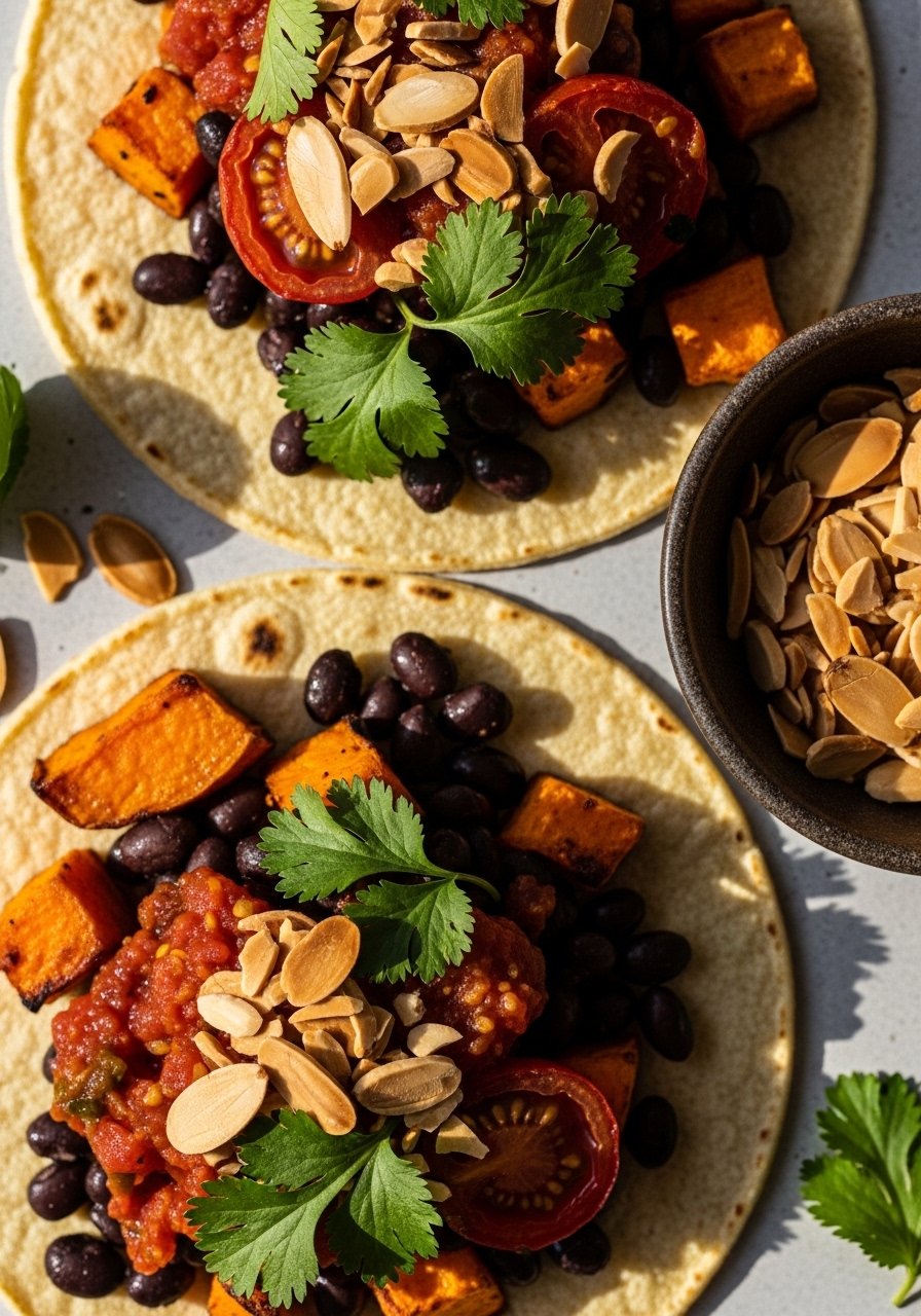 10. Sweet Potato & Black Bean Tacos with Crispy Almonds (vegetarian taco recipe)
