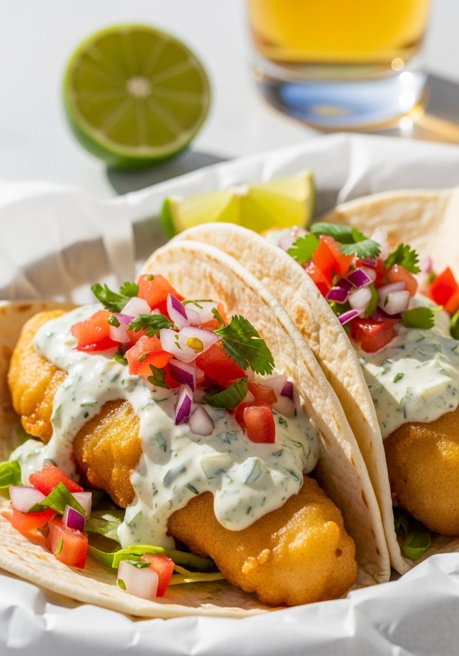 Flaky, beer-battered or lightly pan-fried fish makes for the best fish tacos recipe — crispy outside, tender inside. A tangy cilantro-lime sauce ties it together and pico adds freshness. For batter, use a cold beer or sparkling water and shallow-fry in a non-stick skillet.