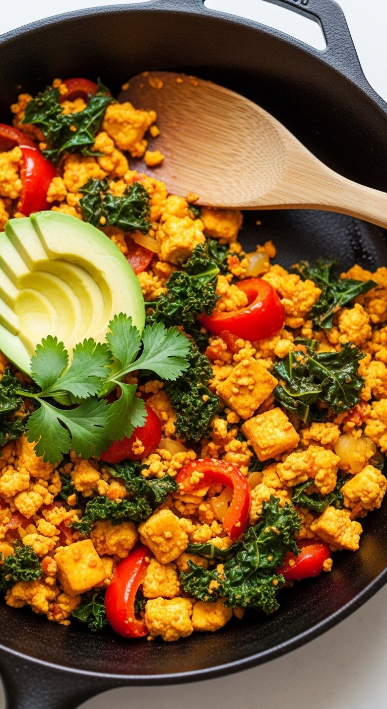 This is your go-to breakfast when you want eggs’ texture without eggs: soft, golden tofu crumbles with bright veggies and a hint of turmeric for color. It’s fast, customizable, and packs protein for a filling start. Fans of savory breakfasts and weekend brunch lovers will both be satisfied.